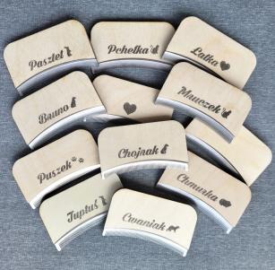 Każda szczotka może zostać spersonalizowana zgodnie z Państwa życzeniem. Polega to na naniesieniu imienia Waszego pupila oraz wybranej grafiki na drewnianą rękojeść szczotki.