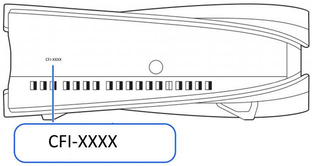 Numer modelu zawiera litery CFI, po których pojawia się seria cyfr i litera. Numer modelu znajduje się na spodzie konsoli, gdy jest ustawiona pionowo.
